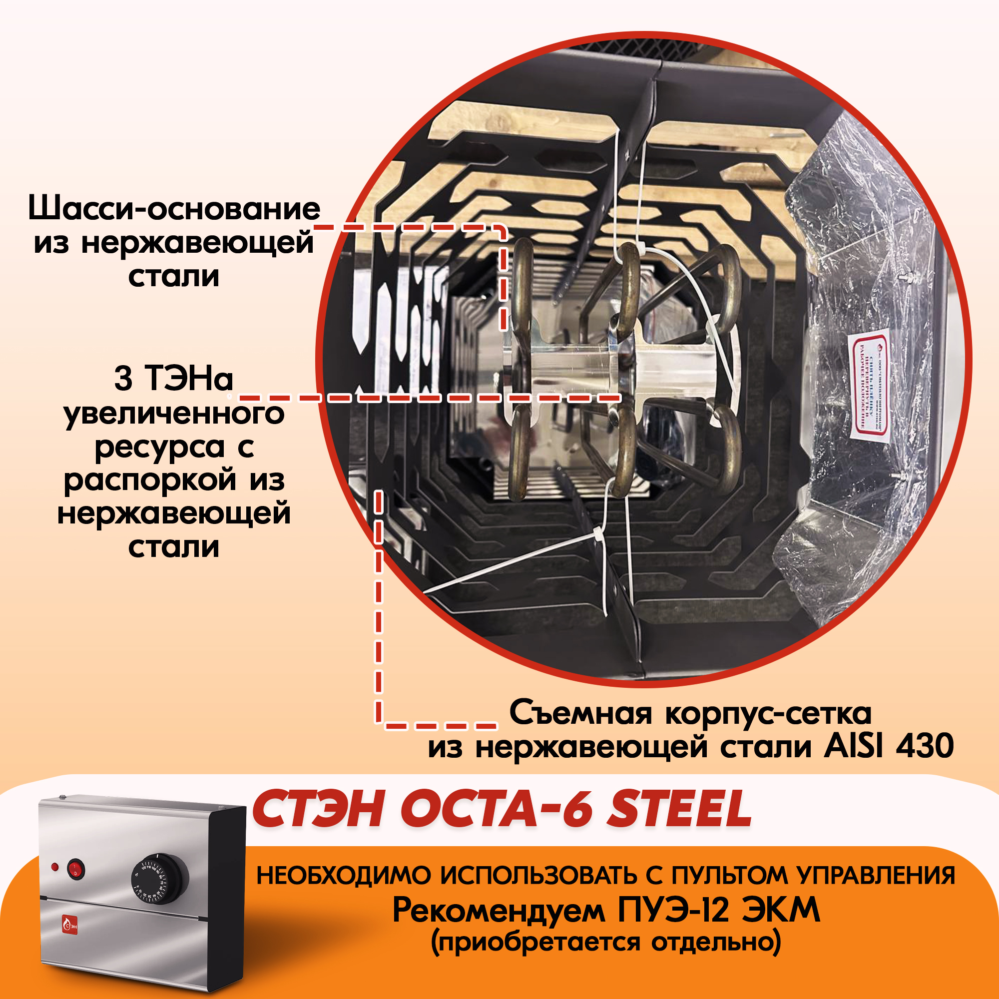 Электрическая каменка СТЭН ЭКМ 6 Octa steel в Хабаровске | Доставка по России