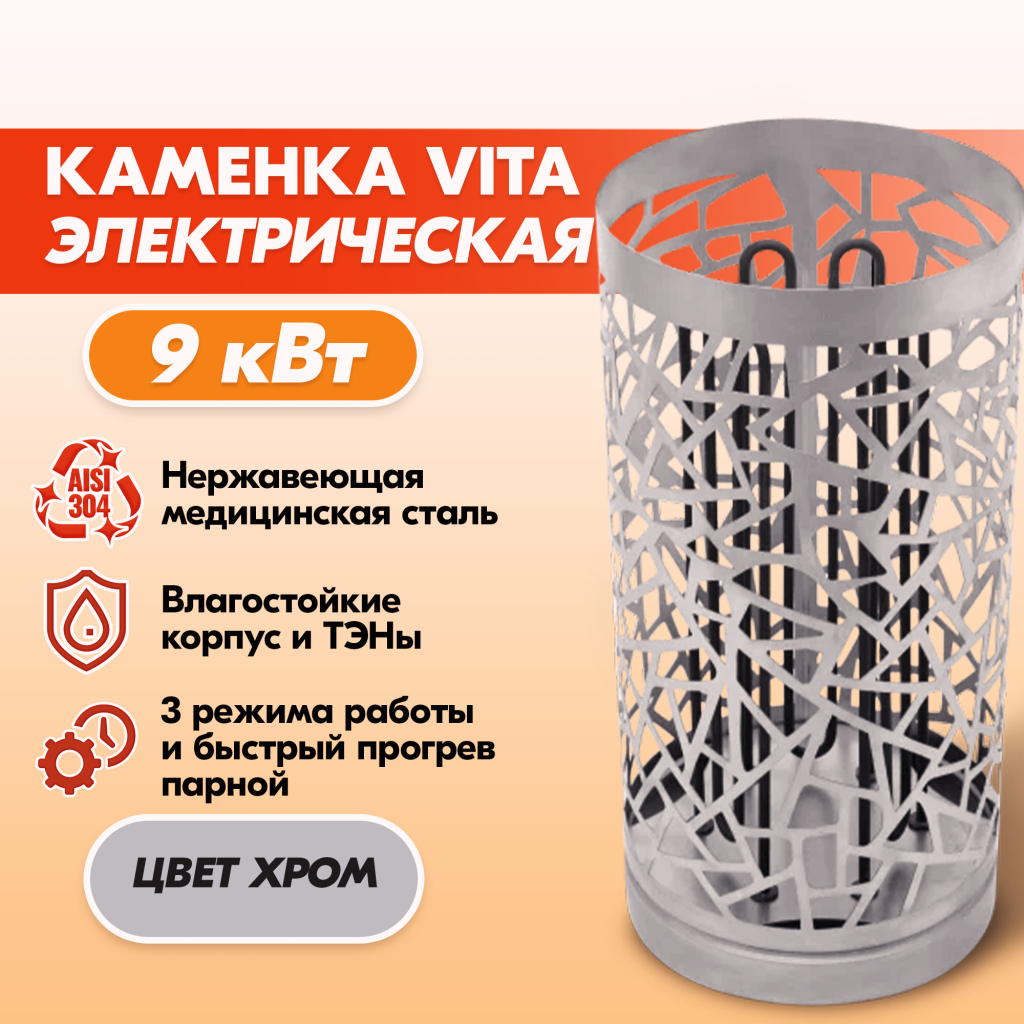 Электрокаменка VITA 9 кВт нерж. в Хабаровске | Доставка по России