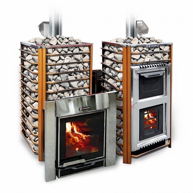 Комбинированная чугунно-стальная печь позволила исключить прямоток и осуществить сложную систему дымовых каналов, которая сильно увеличивает КПД чугунной печи. Каменка из стали эффективнее передает тепло огня на камни, ускоряя процесс нагрева бани и получения легкого пара. А также такая каменка не боится воды, так как чугун, как известно, очень хрупкий материал и боится резких перепадов температуры и в результате попадания воды на нагретый чугун он может лопнуть. В стальной же каменке такого произойти не может.