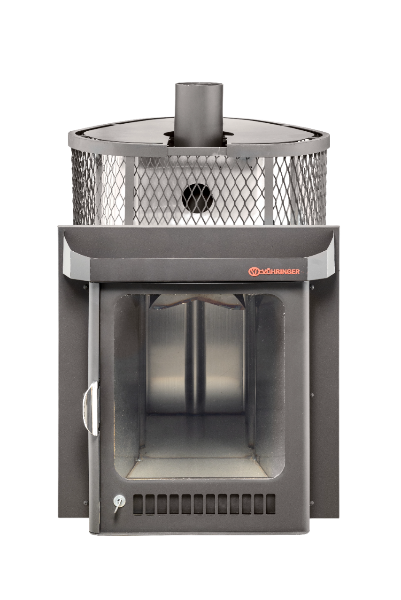 Печи VÖHRINGER с дровяной каменкой, у которой вся топка окружена большой массой камней, сильно разогревается, а дров уходит немного, благодаря полному сжиганию дымовых газов с помощью бокового и верхнего горения. Использование эффекта «Vortex», позволяет извлечь всю энергию и направить её на нагрев большого количества камней.