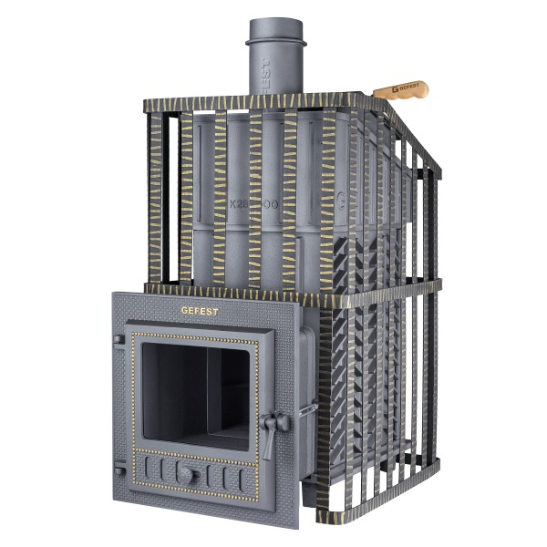 Чугунные банные печи ГЕФЕСТ изготовлены из легированного чугуна с толщиной деталей до 40 мм. Уникальная конструкция печей делает их одними из самых надежных. Модель «ГЕФЕСТ Ураган» отличается расширенной комплектацией: в состав входит высокая кованая стальная сетка для камней, чугунный короб для каменки формы «Президент», чугунная стартовая труба длиной 500 мм, подкидная чугунная дверца ГЕФЕСТ, проставка для установки дверцы непосредственно на короб. Печь имеет полностью закрытую каменку.