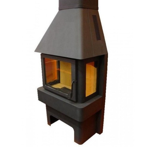 Особого внимания заслуживает уникальная конструкция печи. Благодаря трехстороннему остеклению, вы можете любоваться процессом горения с разных сторон. Например, из кухни или из гостиной.