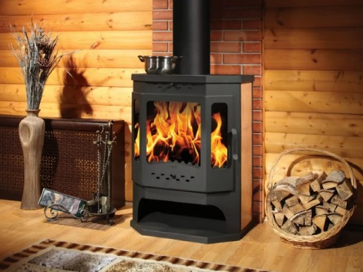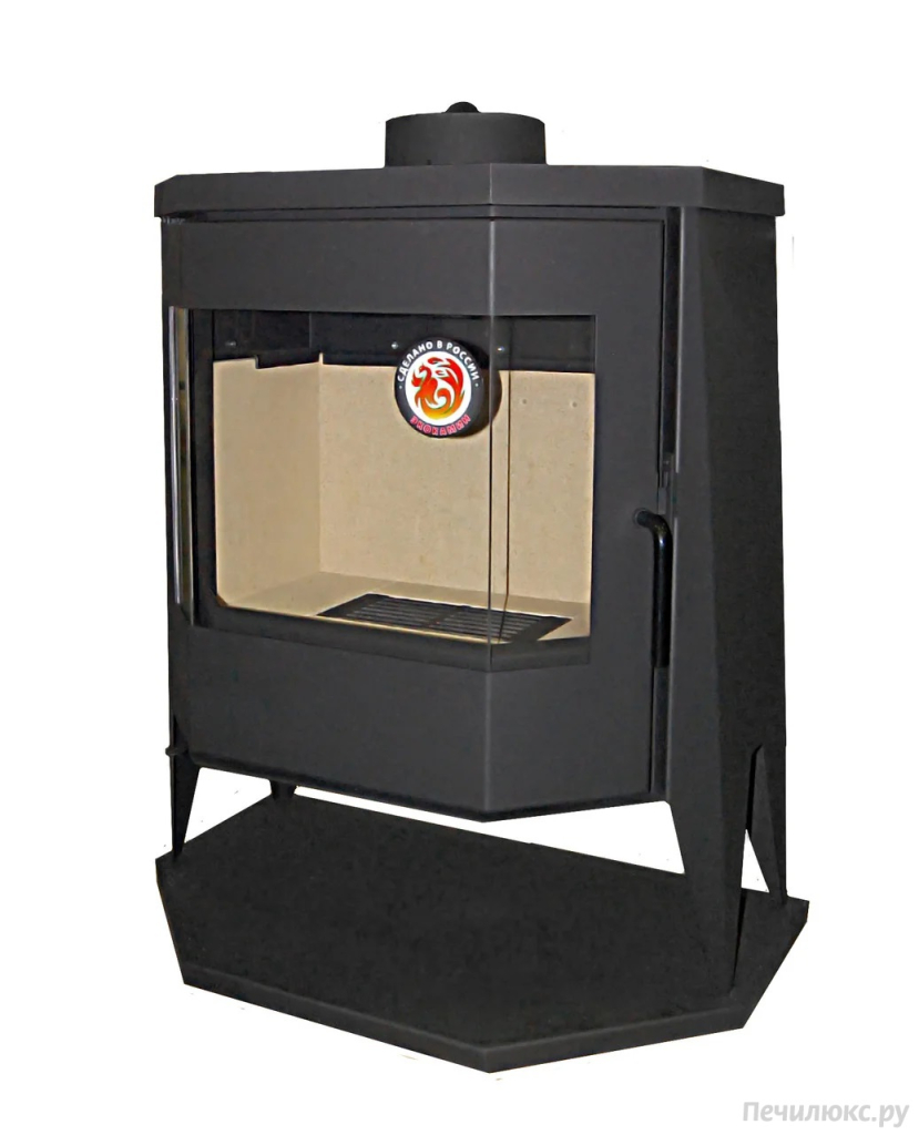 Корпус печи-камина Бавария Панорама Призма выполнен из высокопрочной стали. А, как известно, этот сплав быстро нагревается и отдает тепло. В комнате, в которой установлена печь, тепло ощущается уже через 15 минут после растопки.