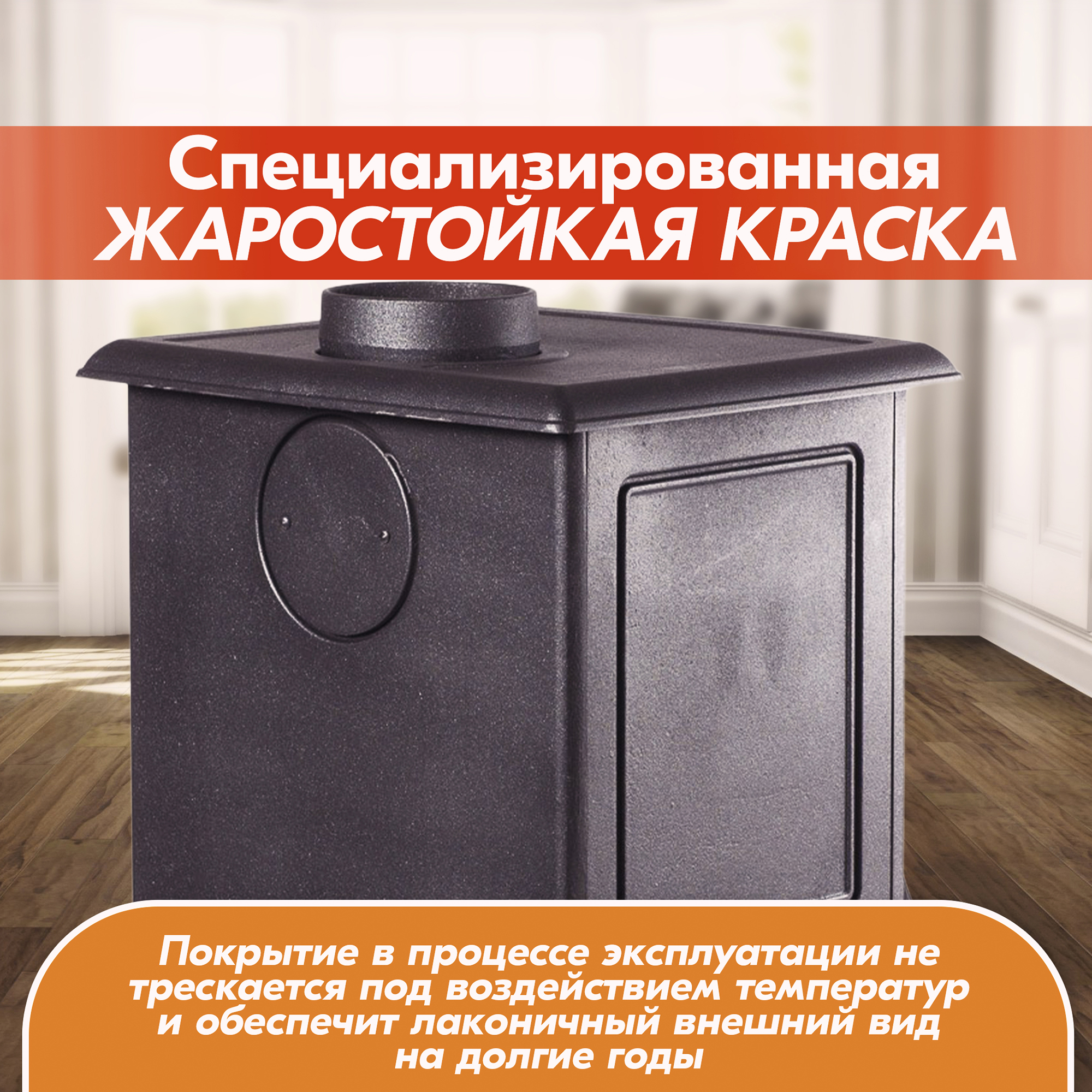 Чугунная конструкция печи-камина гарантирует прочность, долговечность и износостойкость на долгие годы использования.