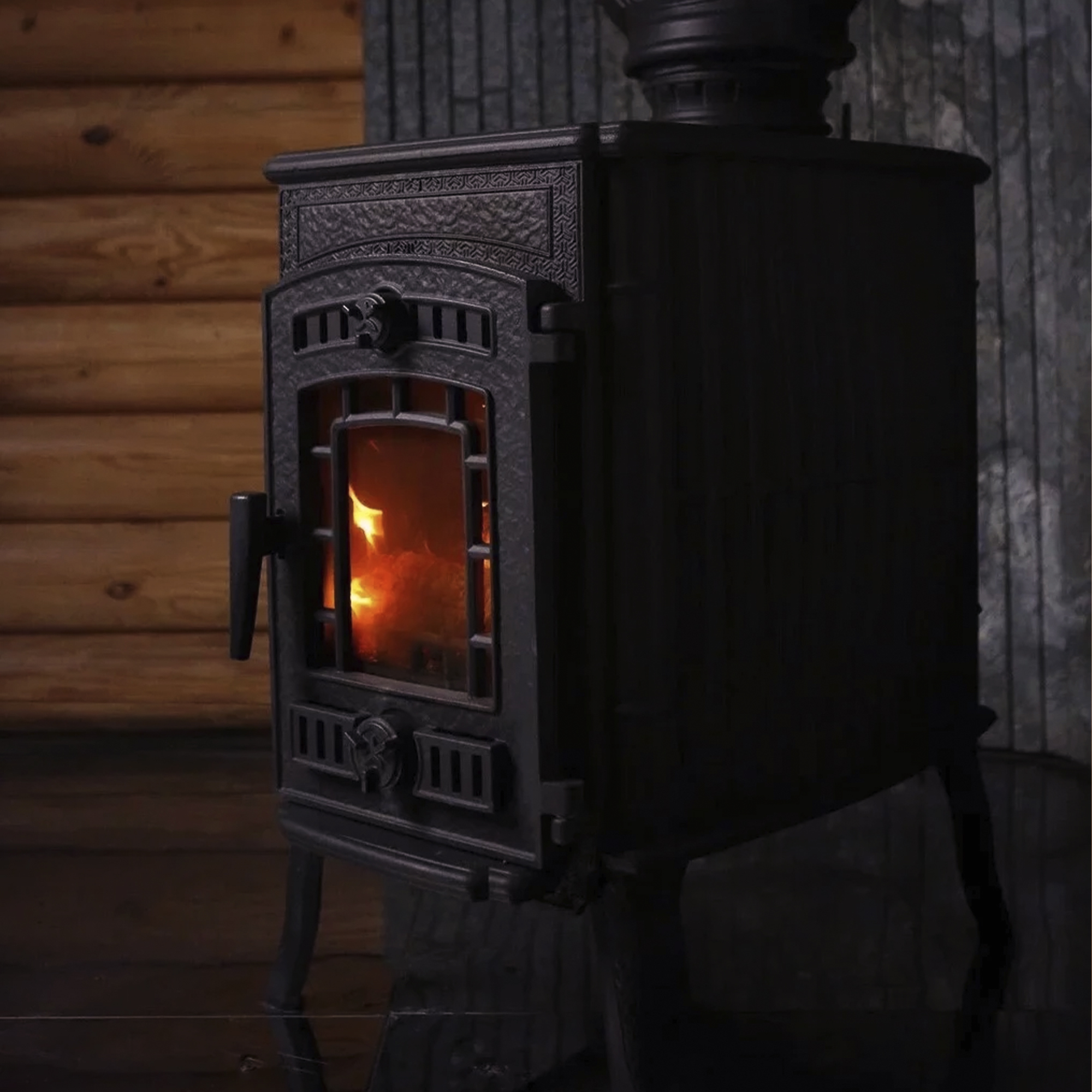 Стекло чугунной печи-камина не коптится благодаря технологии «Чистое стекло».
