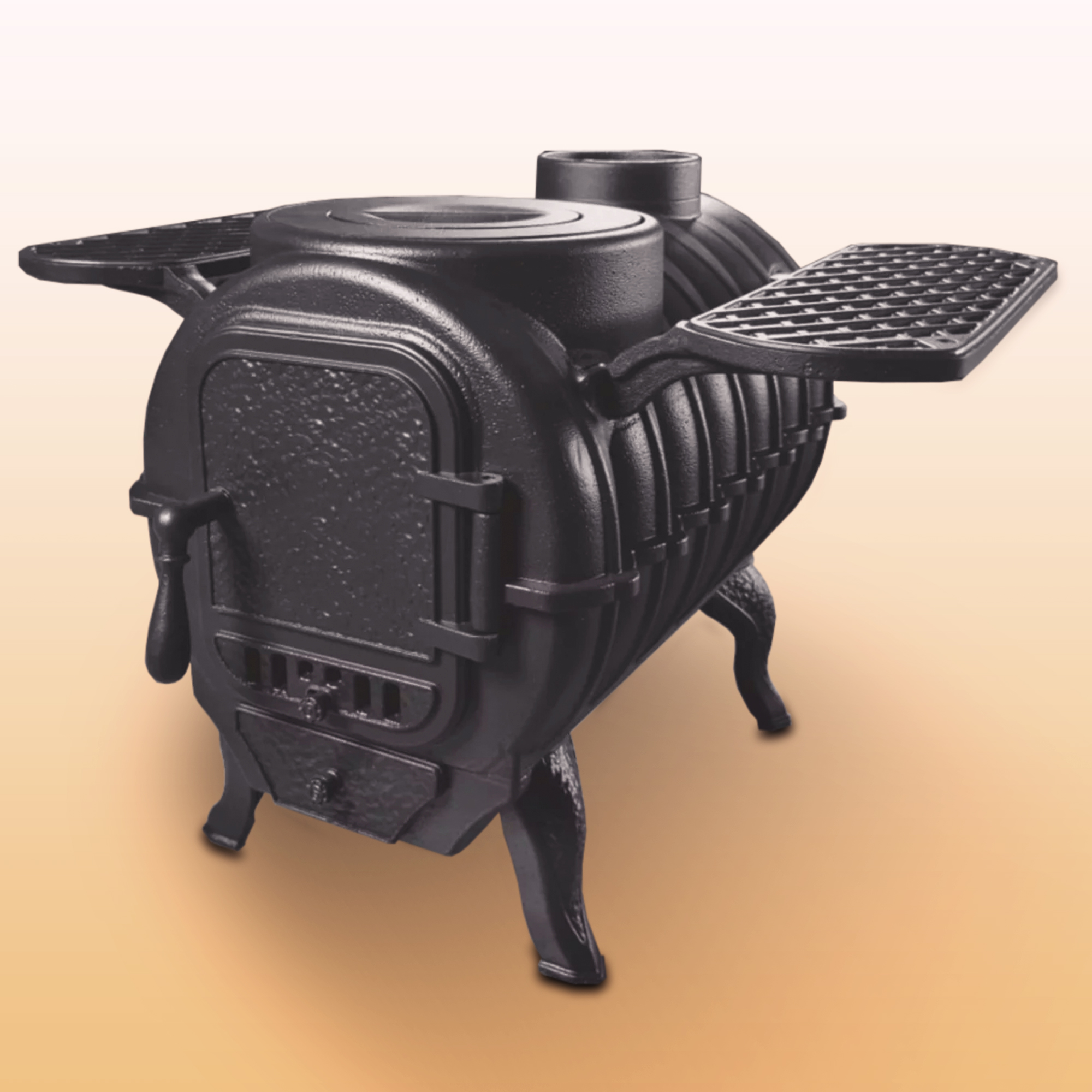 Это делает дровяную компактную печь удобной для транспортировки даже в багажнике легкового автомобиля.