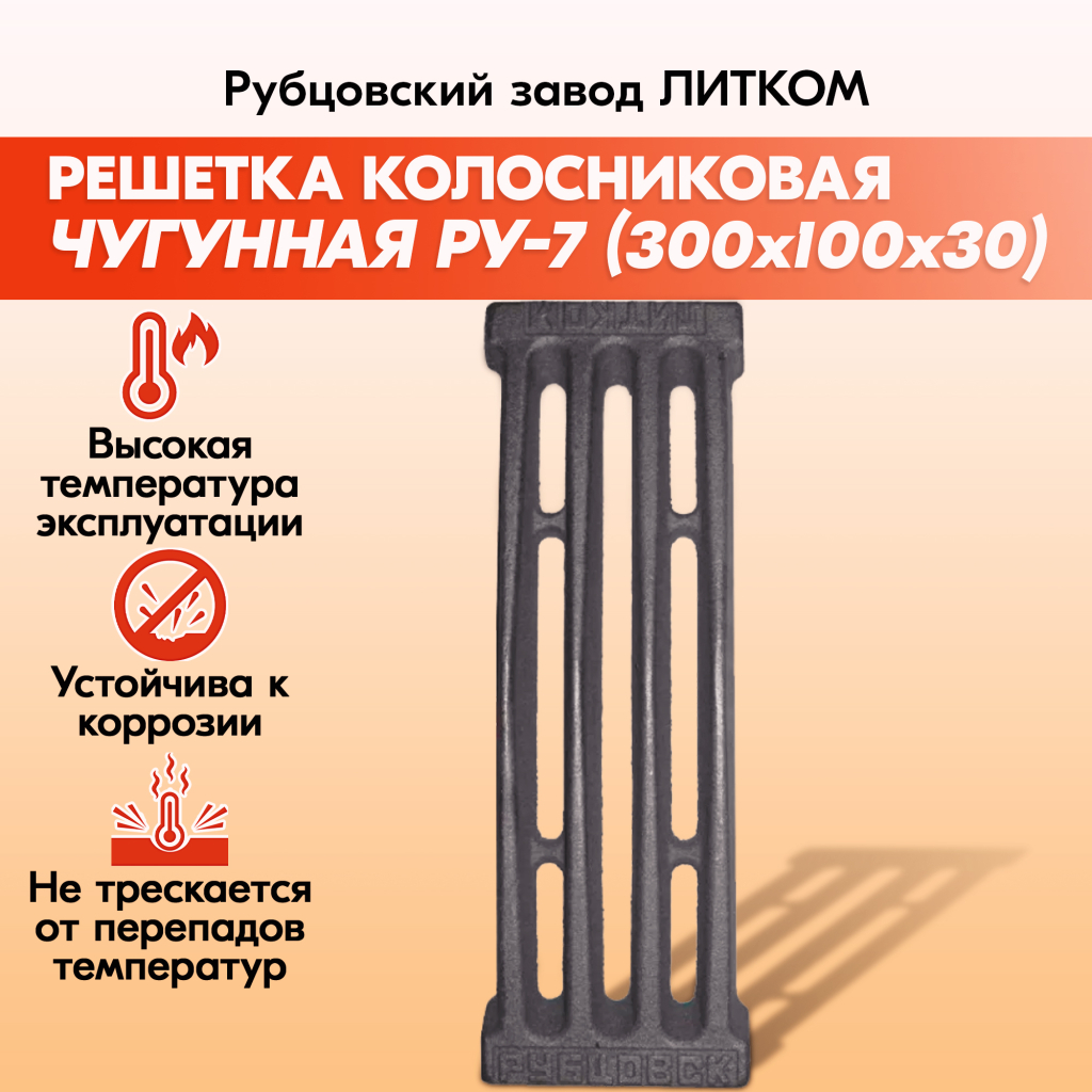 Решетки колосниковые для печи Рубцовского завода ЛИТКОМ производятся из чугуна, который отличается прочностью и долговечностью.