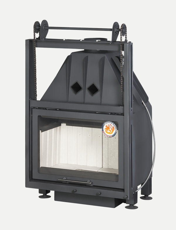 •Встроенная шиберная заслонка позволяет увеличивать/уменьшать сечение дымового канала и регулирует мощность топки.